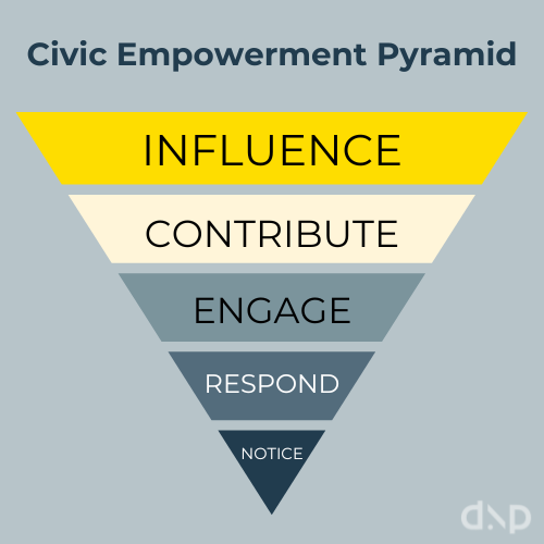 You can also take a look at her Civic Engagement Pyramid, a brilliant graphic and guide on how to get involved with your community.